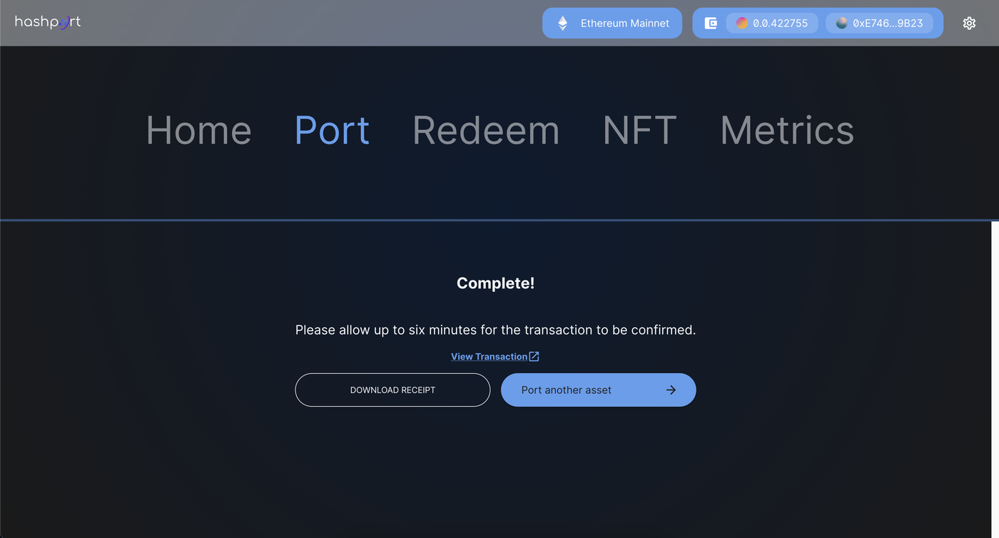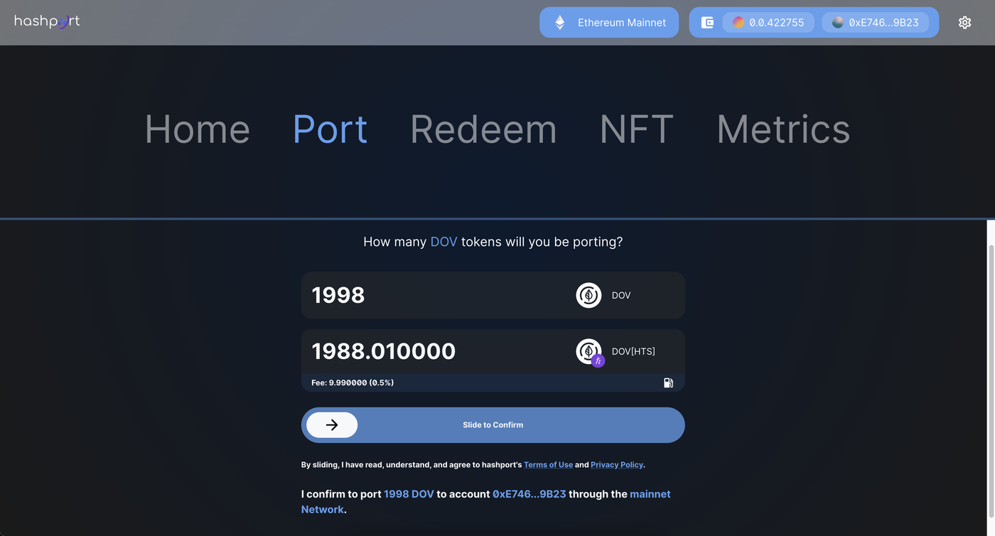 Now, you can enter the amount that you want to port, and when ready, slide the arrow button to confirm.